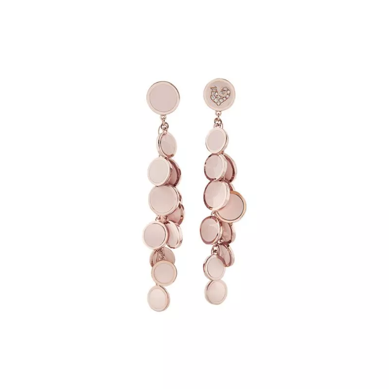Questi orecchini pendenti lunghi Chantecler Paillettes sono realizzati in oro rosa 18 kt e sono abbelliti da un grazioso smalto rosa. Dei brillanti diamanti bianchi donano un tocco di luminosità in più.