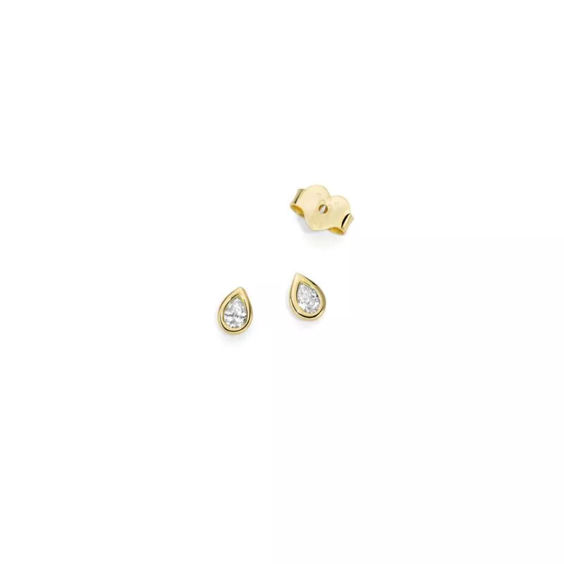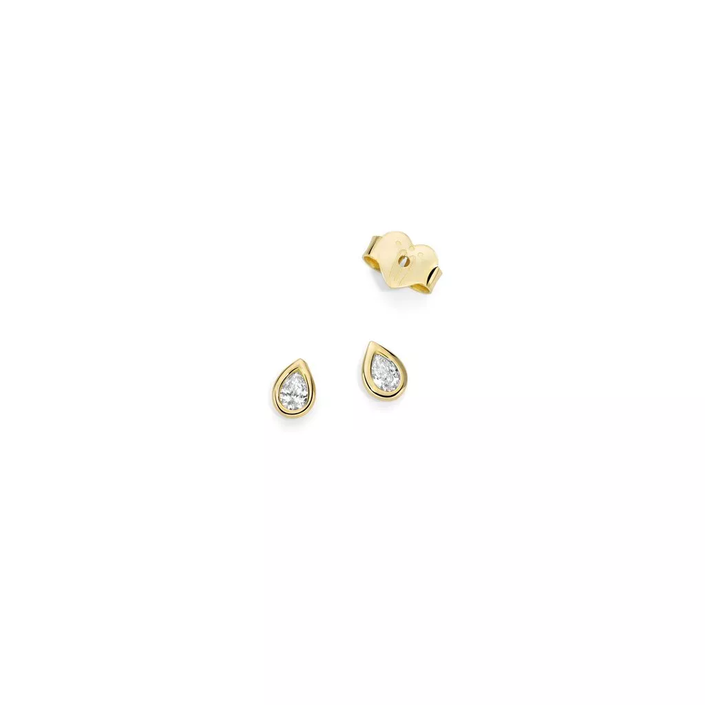 Orecchini Marco Gerbella con diamante a goccia. Realizzati in oro giallo 18 K.