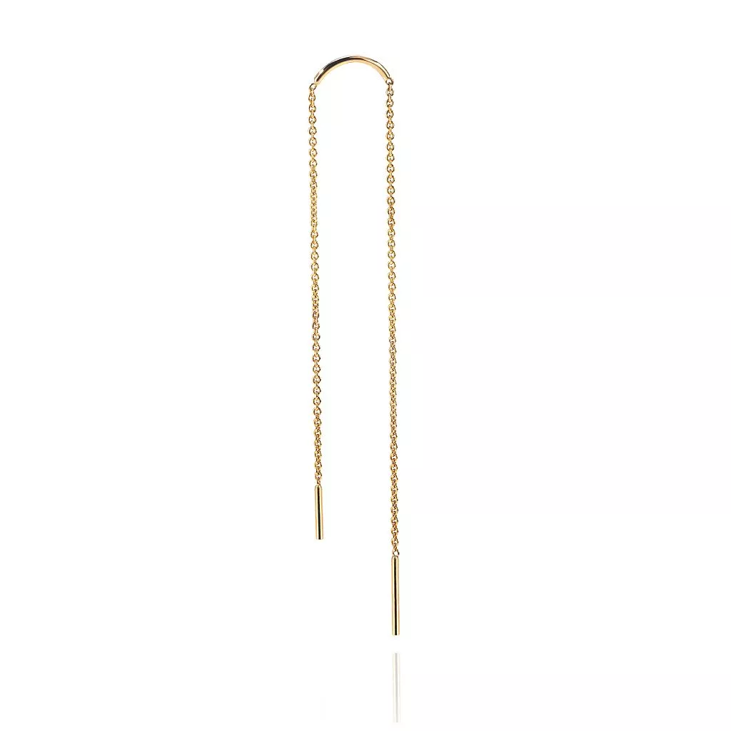 L’orecchino a catena morbida pendente, dal design unico, è realizzato in oro giallo 18 kt.