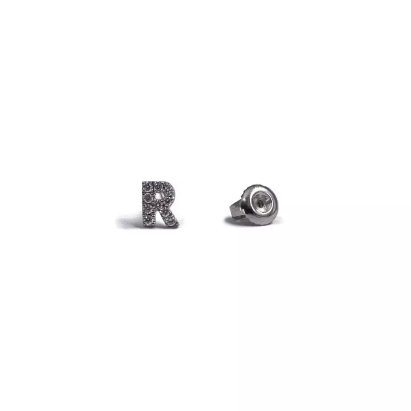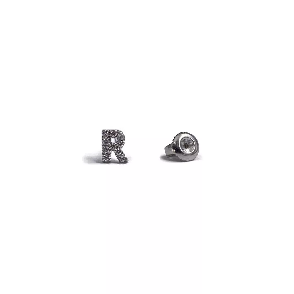 Mono orecchino Crivelli lettera “R” in oro bianco con diamanti.
