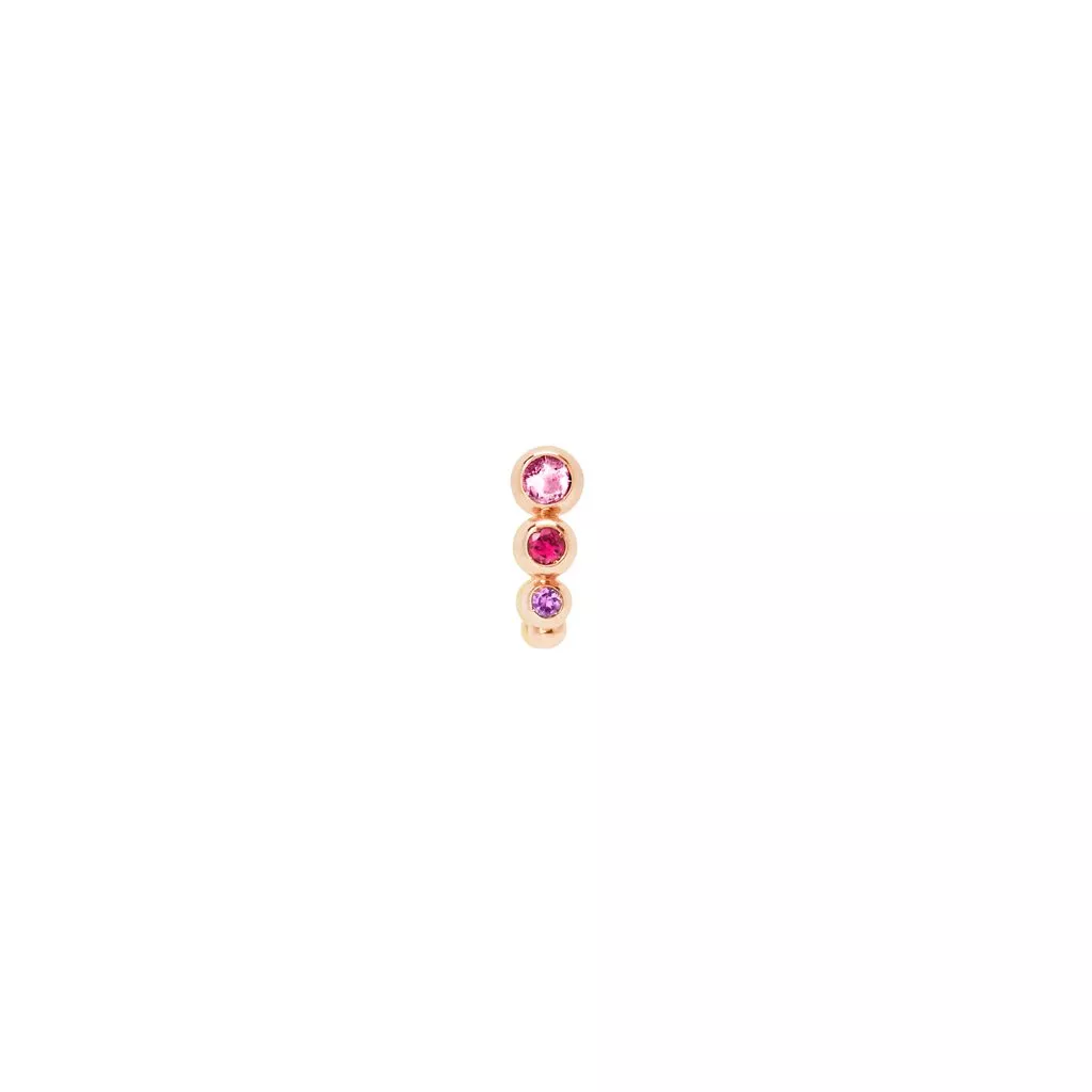 Orecchino Dodo Bollicine realizzato in oro rosa 9K con 1 zaffiro rosa, 1 rubino e 1 ametista. Mezzo paio.