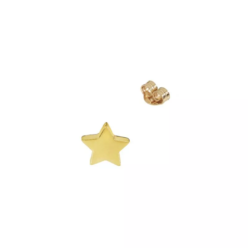 L’orecchino, realizzato in oro 18 kt, si distingue per la sua forma a stella. Grandezza della stella 0,4 cm.