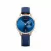 Il Baume 10603 presenta una cassa da 35 mm in acciaio PVD 5N lucido con corona a ore 12. Il quadrante è blu, finitura satinata “soleil”, con datario e piccoli secondi.
