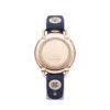 Il cinturino intercambiabile è in cotone blu con impunture azzurre, rivestito in sughero per maggiore confort. Fibbia ad ardiglione.