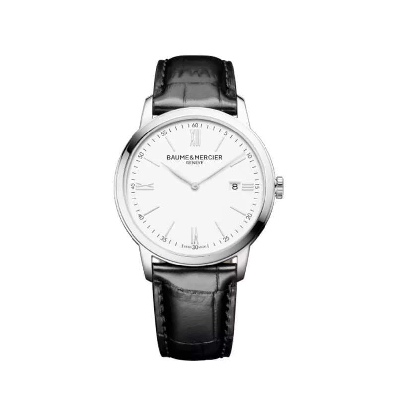 Orologio Baume & Mercier Classima 10414 con cassa da 42 mm e cinturino nero in pelle. Quadrante color bianco. Movimento al quarzo.