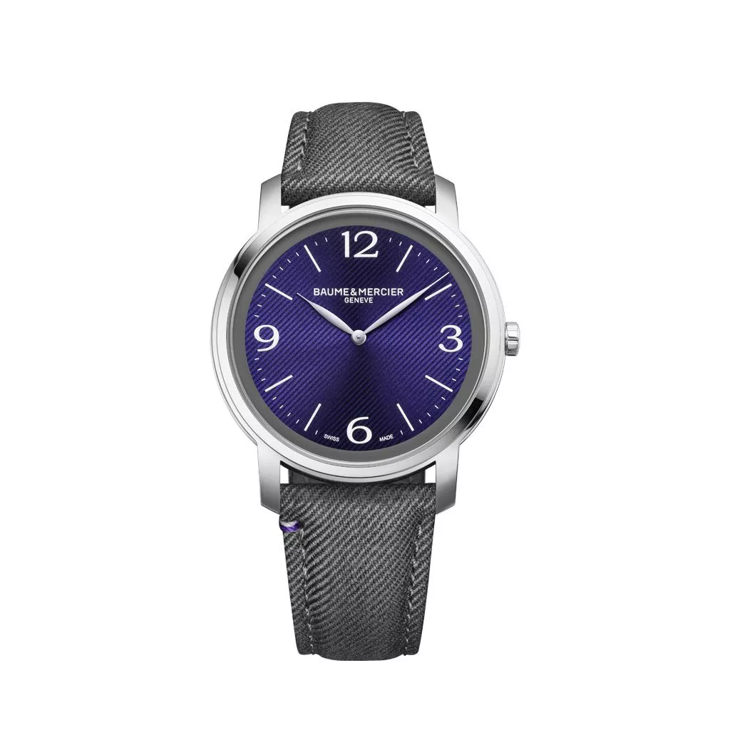 Orologio Baume & Mercier Classima con cassa da 42 mm in acciaio. Movimento al quarzo. Cinturino intercambiabile, in tessuto e in pelle.