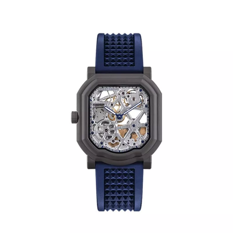 Orologio Gerald Charles GC Sport Squelette con cassa in titanio. Quadrante scheletrato. Cinturino blu reale in gomma. Movimento automatico. Corona a sinistra.