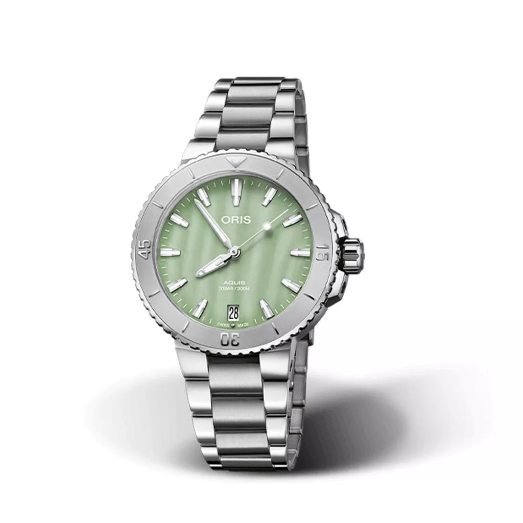 Orologio Oris Aquis Date a carica automatica. Quadrante Verde Spuma. Cassa da 36,50 mm.