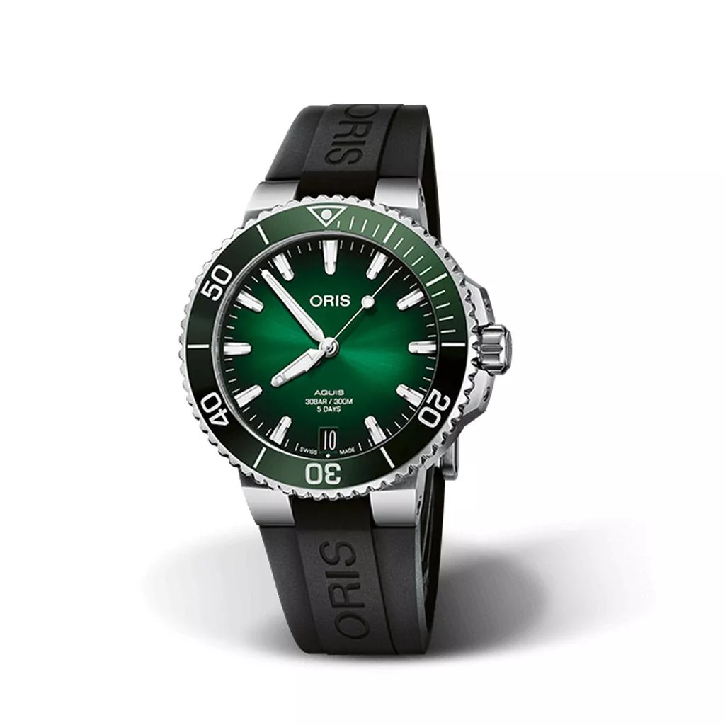 Orologio Oris Aquis Date Calibre 400 con Quadrante Verde e Cinturino in Caucciù