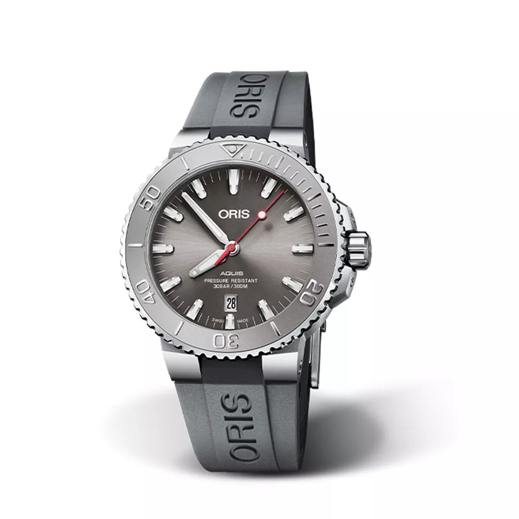 Orologio Oris Aquis Date Relief con Cassa in Acciaio e Quadrante Grigio con Cinturino Grigio in Caucciù