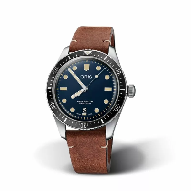 Oris Divers Sixty-Five orologio da uomo, cassa in acciaio da 40 mm, quadrante blu, cinturino in pelle, solo tempo.