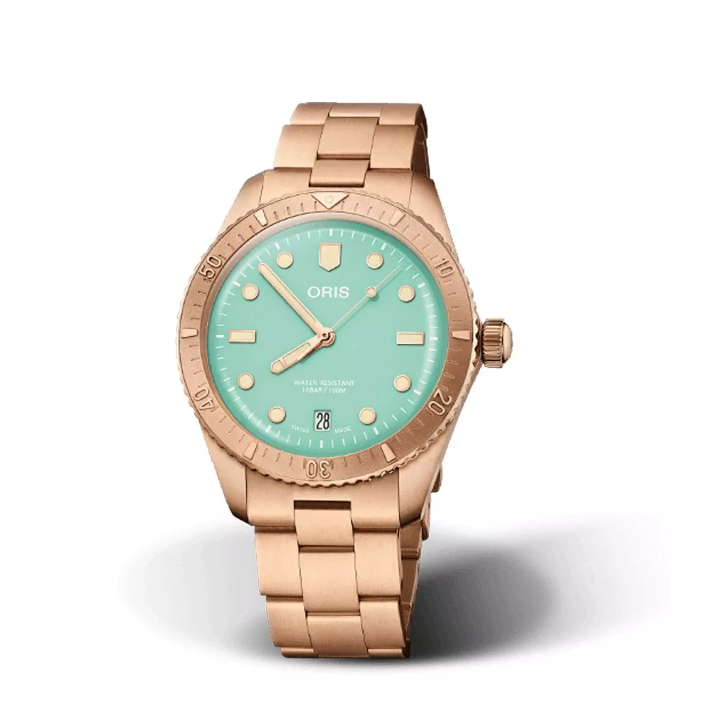 Orologio Oris Divers Sixty-Five Cotton Candy in Bronzo con Quadrante Verde