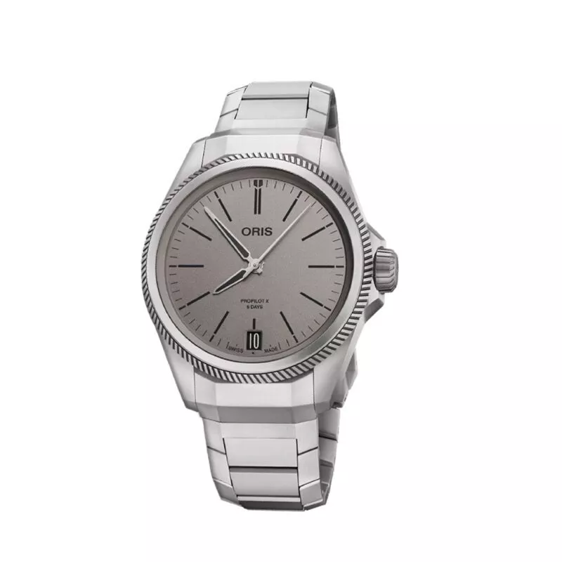 Orologio Oris ProPilot X Calibre 400 con cassa e bracciale in titanio. Quadrante grigio. Carica automatica. Disponibile in più varianti.
