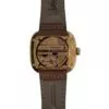 Presenta una vistosa cassa squadrata con gli angoli tondeggianti, da 47 x 47,6 mm in acciaio. Si contraddistingue per la sua corona posta a sinistra, rendendo l’orologio adatto per mancini. Il quadrante è nero, impreziosito da dettagli color oro. Le caratteristiche fondamentali del modello sono indicate dietro il quadrante.